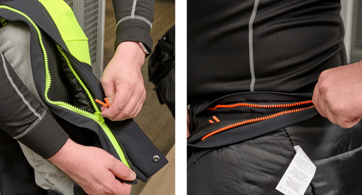 Color-coded zippers make combining FrostFlex™ garments easy and fast. Just simply match colors: lime goes with lime, orange with orange and black with black.