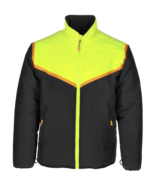 A bright lime stand-up collar on the FrostFlex™ Insulated Quilted Jacket still shows when worn under the FrostFlex™ Insulated Jacket, giving safety managers a quick visual cue that an employee has ample protection for environments as cold as -60°F.
